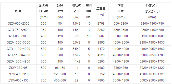 振動給料機技術(shù)參數(shù):